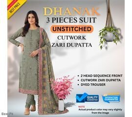 Premium Quality Dhanak Winter Fabric 3 Pcs Unstitched Ladies Suit Elegant Classic Cutwork Zari Dupatta Soft, Warm & Comfortable for Winter Stylish & Durable Fabric Suitable for Daily Wear & Casual Use